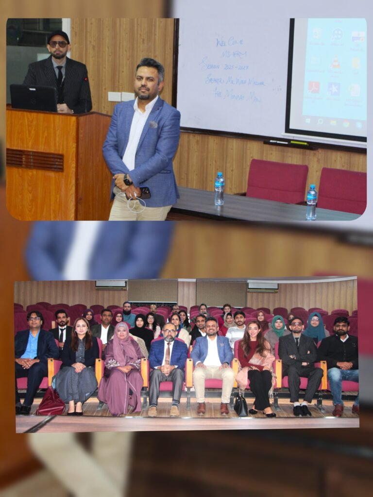 IAS proudly hosted a dynamic and high-impact training session for MS-HRM (evening) 2nd Semester students led by Mr. Wasif Mazhar — HR Architect, Lead Trainer, and Founder of Make It Happen – Global, a GIG-based HR & Organizational Development company operating across Pakistan, Saudi Arabia, and the UAE.