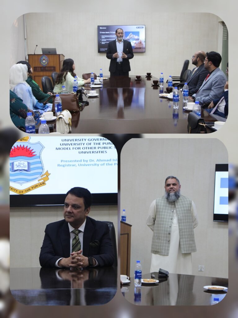 Dr. Ghalib Ata, from IAS, presented an exposition on the challenges faced by public sector Higher Education Institutions (HEIs) and shared perspectives on futuristic planning at the University of the Punjab.
