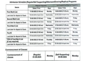 Note: All upcoming Regular/Morning merit lists will be available at the following link as per schedule: